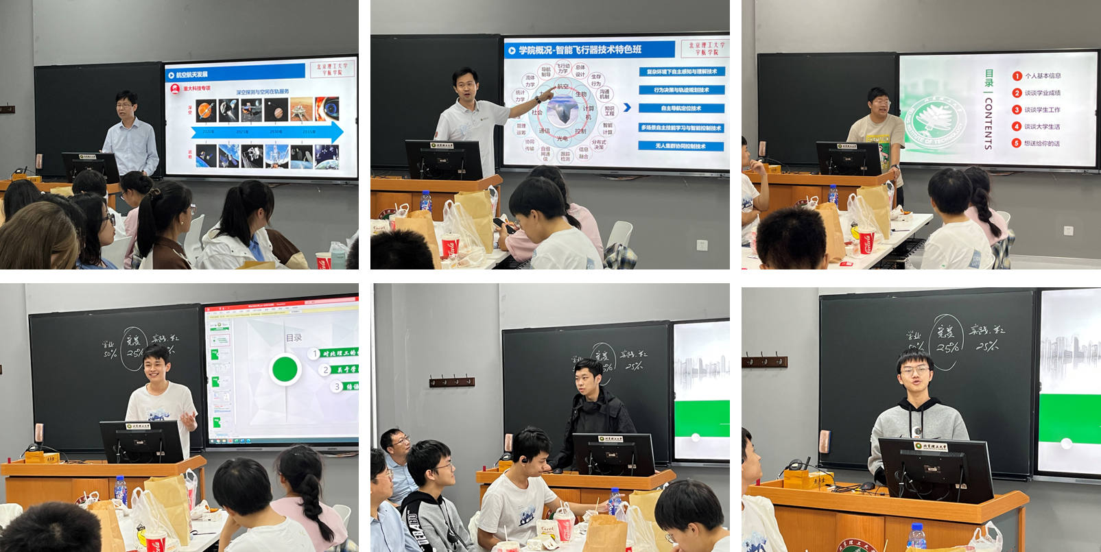 赵颖涛、莫雳两位老师介绍了特立书院工程科学实验班、智能飞行器技术特色班的培养特色。黑龙江籍在校生于航石,海南籍在校生林师源、何天宇、冯彦豪分别从大学学习方法、参与学校活动以及在校生活等方面进行分享,希望新生学弟学妹能拥有美好充实的大学生活。大一新生们也主动参与交流,现场欢声笑语、气氛高涨。