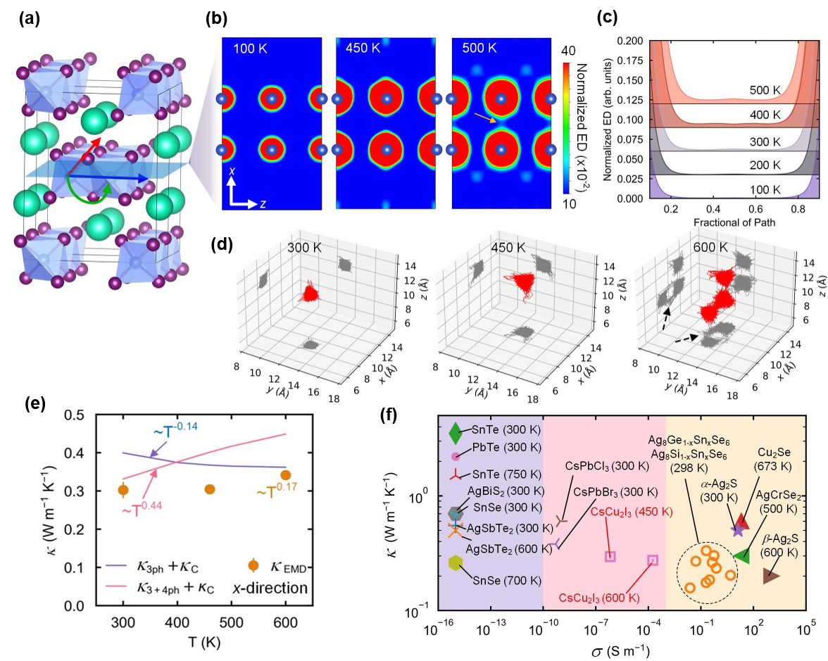 图1 CsCu2I3中的Cu离子受限迁移与玻璃状热导率