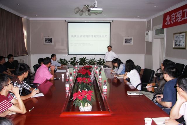 会议室做了“块状金属玻璃的纯剪实验研究”学术报告。搜书吧