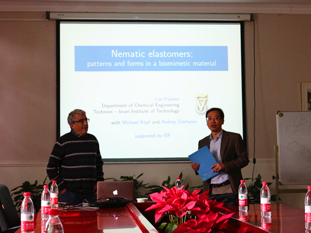 Len Pismen教授介绍了他关于液晶弹性体的最新工作进展,他探索了弹性活性体的宏观连续模型,该模型包含相互反馈,并诱导自发的向量或液晶两级分化和机械变形。