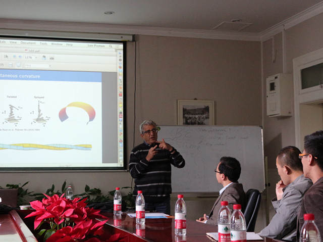 Len Pismen教授与广大师生进行交流互动,与季葆华教授等热烈讨论了液晶的理论模型及力学问题,还探讨了形态上近似的细胞排列的理论模型等相关问题,使得大家都有很多收获。