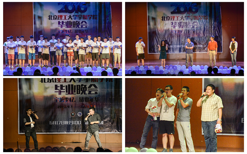 团委书记徐莹莹以及班主任、辅导员们都来到现场为同学们践行。晚会共分三幕进行,分别为回忆,感恩,和未来。街舞社的开场舞直接将现场气氛带起,飞设本硕博班的小品别出心裁,飞动班的诗朗诵饱含深情,研究生的歌曲串烧和辅导员们的合唱将现场气氛推向高潮,班主任们也纷纷上台为同学们送上祝福寄语,飞设一班的舞台剧更是一亮相就惊艳全场。最后在搜书吧