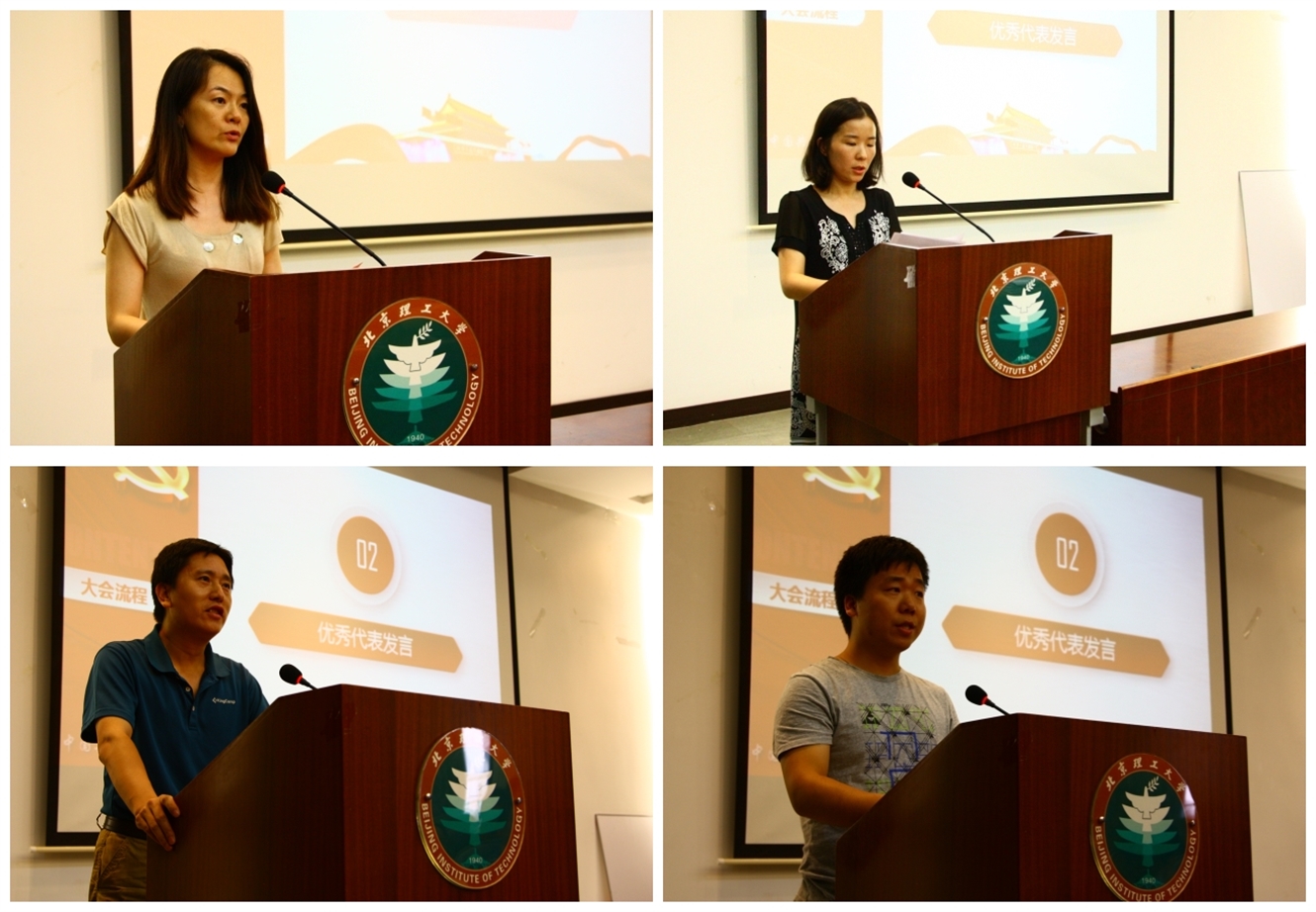 党委,向全院党员致以节日的问候,向受表彰的先进集体和优秀个人表示祝贺,并向新加入党组织的党员们表示热烈欢迎。随后,机关党员徐莹莹、教工党员郭百巍、学生党员张宏业分别代表优秀党员讲话,三名党员代表以不同的视角与同志们分享了自己如何在平凡的岗位上发挥党员先进性。徐莹莹老师讲述了在学生工作中加强党性修养的重要意义;郭百巍老师介绍了共产党的信念在教学科研中发挥的重大影响;张宏业同学则结合实际分享了支部生活的组织经验,代表们朴实而真挚的发言获得了现场的阵阵掌声。