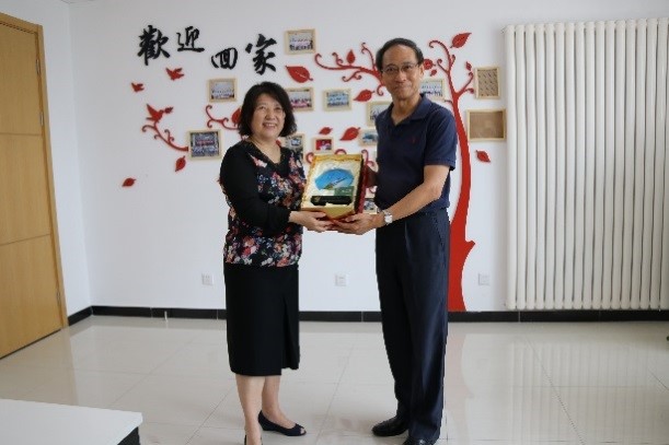 承文校友与学院互赠纪念品,表达了对学院未来发展美好的祝愿,同时表示今后将一如既往的支持学院教育事业的发展。