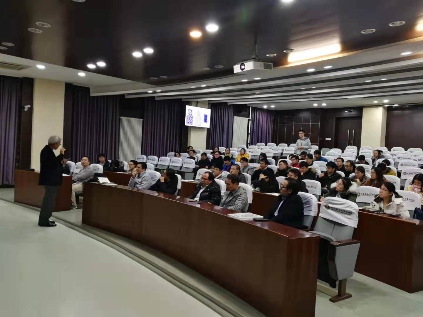 Sang-Wook Cheong教授主要介绍了在磁性材料中由于拓扑纠缠而产生的极其新颖的磁性畴结构,包含手性结构畴与磁性畴等内容。Cheong教授从手性入手,深入浅出的讲解基本概念与前沿研究的进展,引起了师生们的积极提问与广泛讨论。