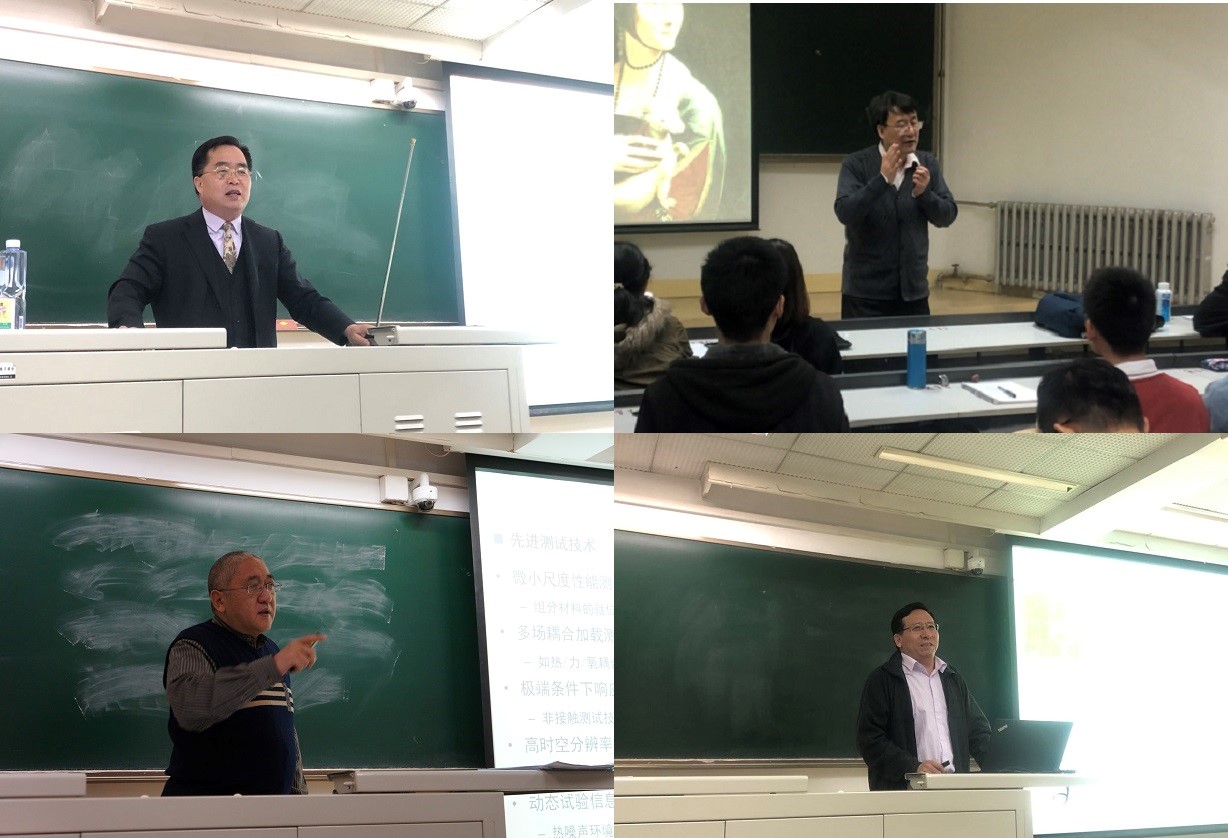 本课程自2008年第一次开设,每年秋季学期为研究生新生授课。经过多年的探索和实践,已经形成了稳定的授课模式和授课团队。目前该课程由力学系赵颖涛副教授负责,授课团队包括胡海岩院士、方岱宁院士、胡更开教授、刘青泉教授、洪家旺教授、朱睿教授、周萧明教授、王成教授、张庆明教授、陈少华教授、梁军教授等校内一线科研教学主力。外请专家则包括兄弟院校、各航天院所的著名学者,2008~2018年期间,清华大学黄克智院士、北京大学的魏悦广院士和黄筑平教授、中科院力学所的李家春院士、王自强院士和何国威院士、西安交通大学的卢天健教授、北京航空航天大学孙茂教授和王晋军教授、中国空间技术研究院韩增尧研究员、中国空间技术研究院西安分院副院长宋燕平研究员、加拿大Western Ontario大学的Jerzy M Floryan教授等教授均受邀为学生们呈现了精彩的学科进展报告。2019年秋季学期在人员组成上进行了优化组合,其中邀请的校外专家有北京大学的魏悦广院士、中科院力学所的何国威院士、西南交通大学的翟婉明院士、清华大学的殷雅俊教授、北京航空航天大学的刘沛清教授等。这次授课团队包括四位中科院院士、多位长江学者、国家杰出青年基金获得者和优青等国内外科研教学一线的优秀学者,内容涵盖了力学的各个专业领域及重要研究方向,兼顾了学术与工程领域,不仅贴合人们的日常生活,而且注重面向国家重大需求。