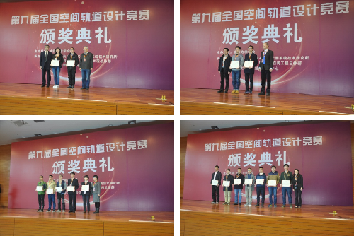 颁奖环节在激昂的音乐中进行,获奖队伍按照追求卓越奖、优胜奖、季军、亚军、冠军的顺序依次上台领奖。获奖队伍代表意气风发,展现了年轻一代航天专业研究生和轨道设计工作者的风采。