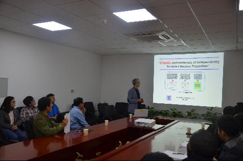 进行学术访问与交流,并做了题为《Elastic Metamaterials of Independently Tunable Effective Properties》的学术报告。周萧明教授主持了交流活动,胡更开院长参与并介绍了搜书吧