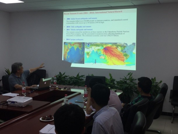 会上Philip Liu教授做了题为“The propagation and Simulation of Tsunamis”的学术报告,生动地介绍了海啸的形成机制、演化过程和产生的灾害,从理论上阐述了海啸波的传播规律,并详细介绍了海啸的动力学模型和数值模拟预测方法。同时中科院力学所王展研究员、陈晓东副研究员、搜书吧