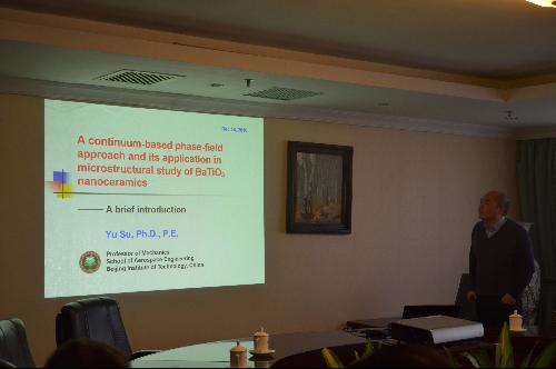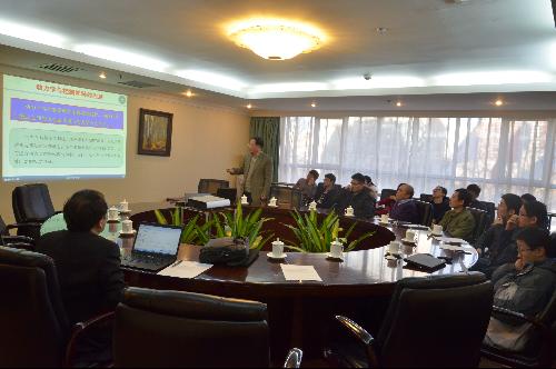 16日,Wang教授与学院师生进行了更为深入的学术交流。同时北京工业大学张伟教授、杨晓东教授等也参与了学术交流。上午张伟教授做了题为“动力学与控制学科发展与人才队伍建设”的报告,搜书吧