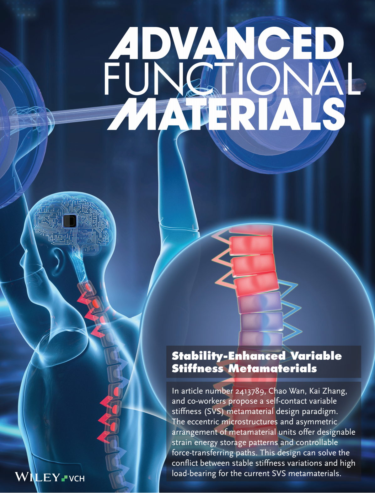 软物质力学团队在力学超材料方面取得重要进展,相关研究成果以“Stability-Enhanced Variable Stiffness Metamaterial with Controllable Force-Transferring Path”为题发表在国际顶级期刊《Advanced Functional Materials》,并被选为当期卷首论文(Frontispiece),如图1所示。搜书吧
