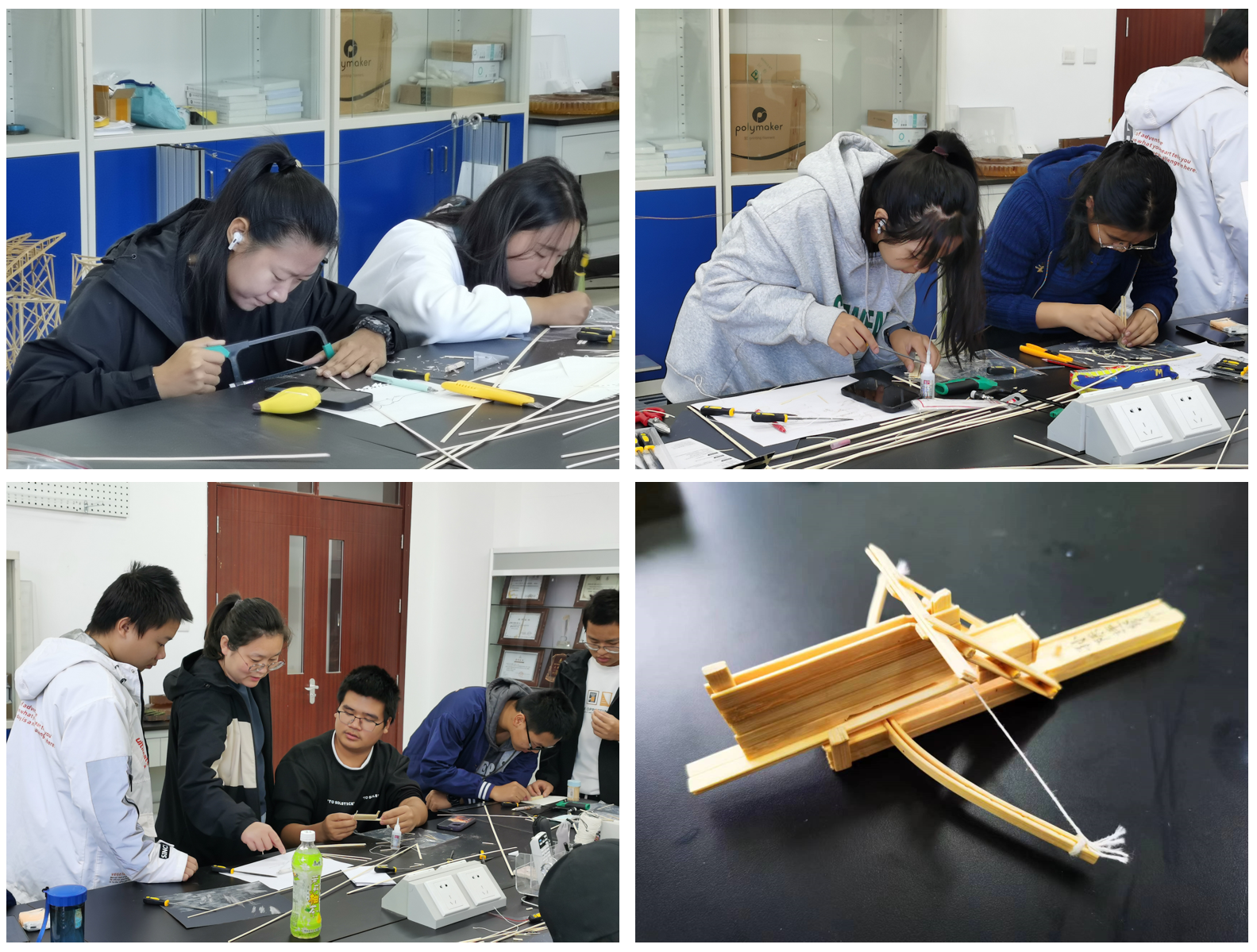 基础力学北京市实验教学示范中心依托“精工创研”双创基地定制开发了第五期以“力学设计”为主题的基础科研训练类项目。课程吸引了来自本科一、二、三年级的60名同学参加。在力学实验中心马沁巍、程修妍和代玉静三位老师的指导下,同学们完成了16学时的工程创新实践项目。